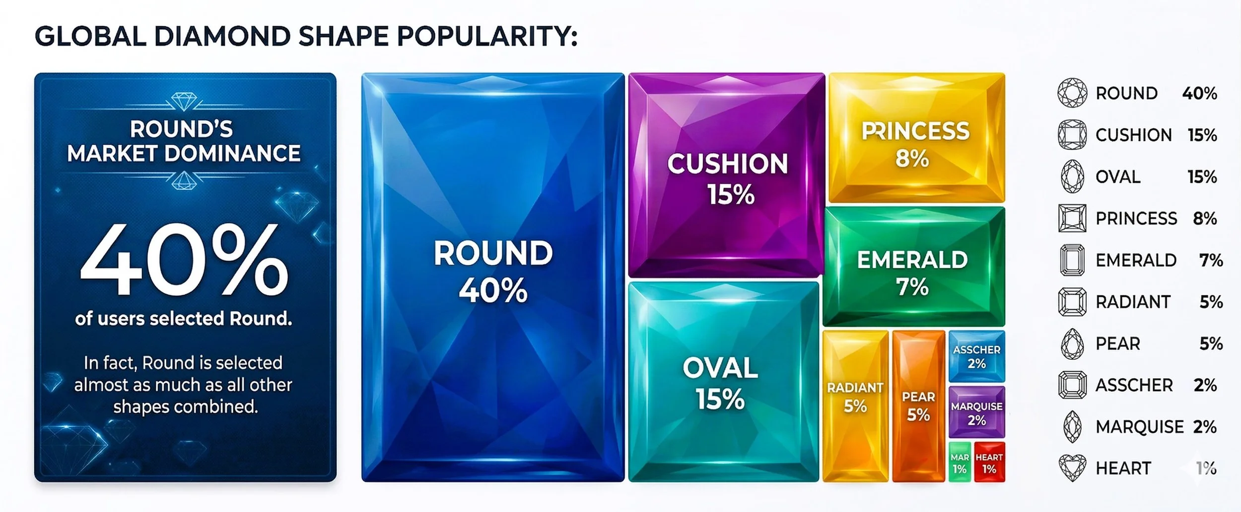 While the data shows that the Round Brilliant is the king of the industry, the rise of the Oval and Cushion cuts proves that modern couples are increasingly looking for ways to personalize their symbols of commitment.